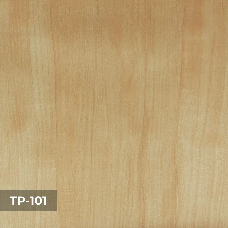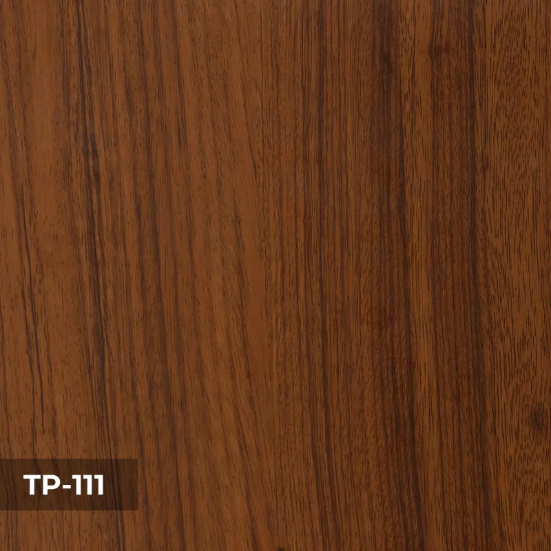 (3) Lớp phủ PVC vân gỗ: Lớp phủ bề mặt PVC sử dụng công nghệ tiên tiến để tạo ra các họa tiết vân gỗ chân thực, sắc nét, không chỉ gia tăng tính thẩm mỹ cho sản phẩm mà còn tăng khả năng chống trầy và chống thấm nước. Lớp phủ PVC có tới hơn 30 loại vân gỗ cho khách hàng lựa chọn, phù hợp với mọi không gian. Có 2 loại là phủ PVC vân gỗ 1 mặt và 2 mặt.